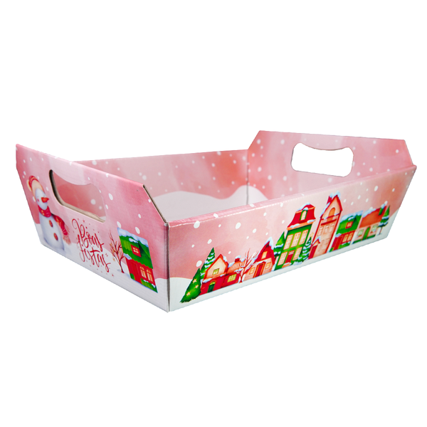 A Bandeja Acoplada tamanho M é produzida em Papel Cartão 250g, acoplada em Microondulado 250g, impressa em 4x0 cores e com acabamento em verniz alto brilho. O seu tamanho é de 11cm de Altura, 32cm de Largura e 23cm de Profundidade.