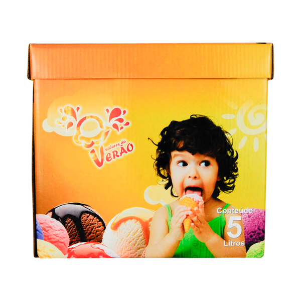 As caixas para sorvete apresentam design moderno, com estampas que despertam sensação de sabor e cremosidade.